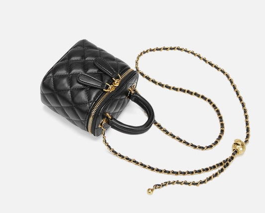 バニティバッグ ラムスキン チェーンショルダー 羊革 黒 レディース Mサイズ