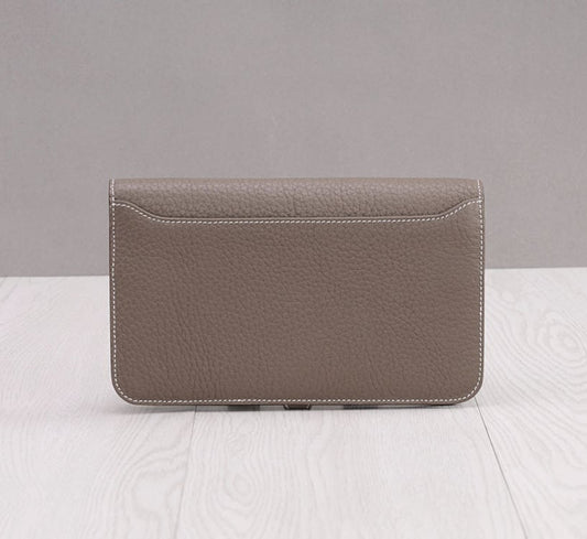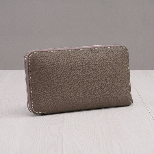 本革レザー長財布 ラウンドジップ長財布 シルバー金具 エトゥープ グレー