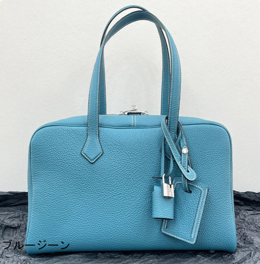 本革ボーリングバッグ エトゥープ 黒 ブルージーン 35cm ヴィクトリア風 トリヨンクレマンス風