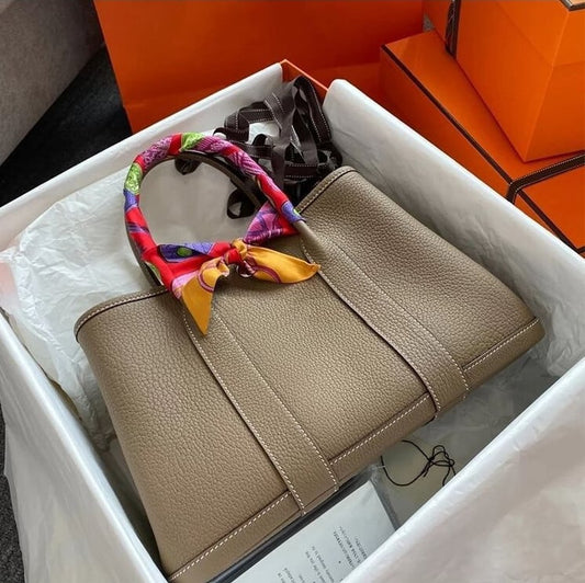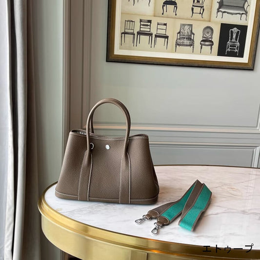 本革トートバッグ 30cm 2wayタイプ エトゥープ ゴールド 黒