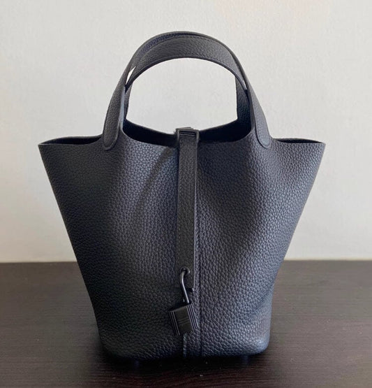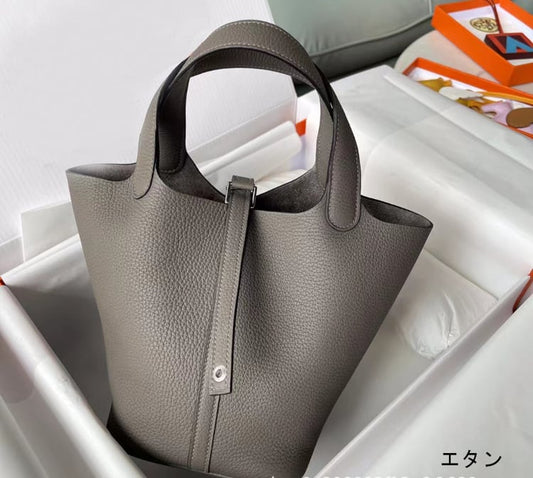 本革キューブバッグ フランス革 エトゥープ 黒 レディース Mサイズ 最高品質