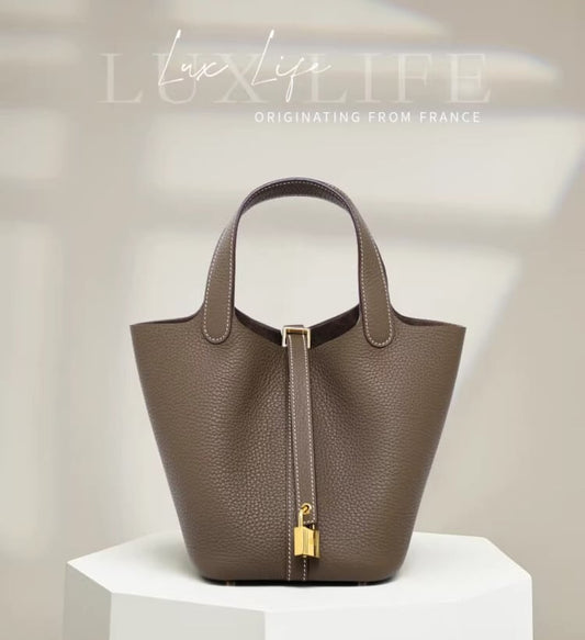 本革キューブバッグ 22cm エトゥープ黒ゴールド カラーバリエーション 上質