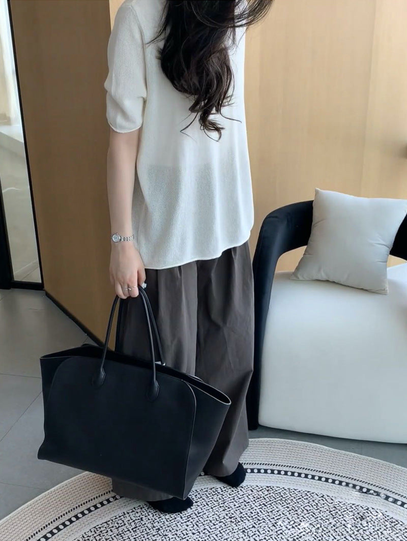 本革トートバッグ 10 12インチ 2wayタイプバック ブラック トープ エクリュ マルゴー風