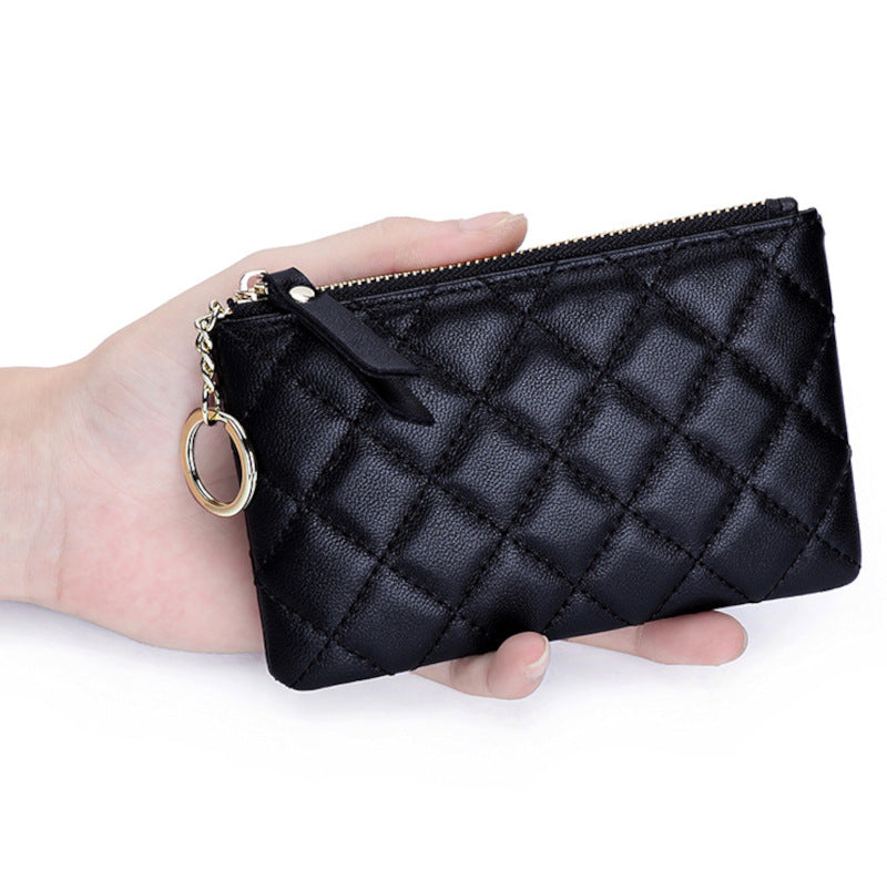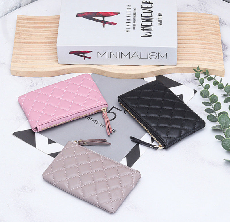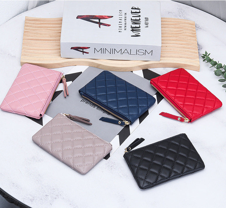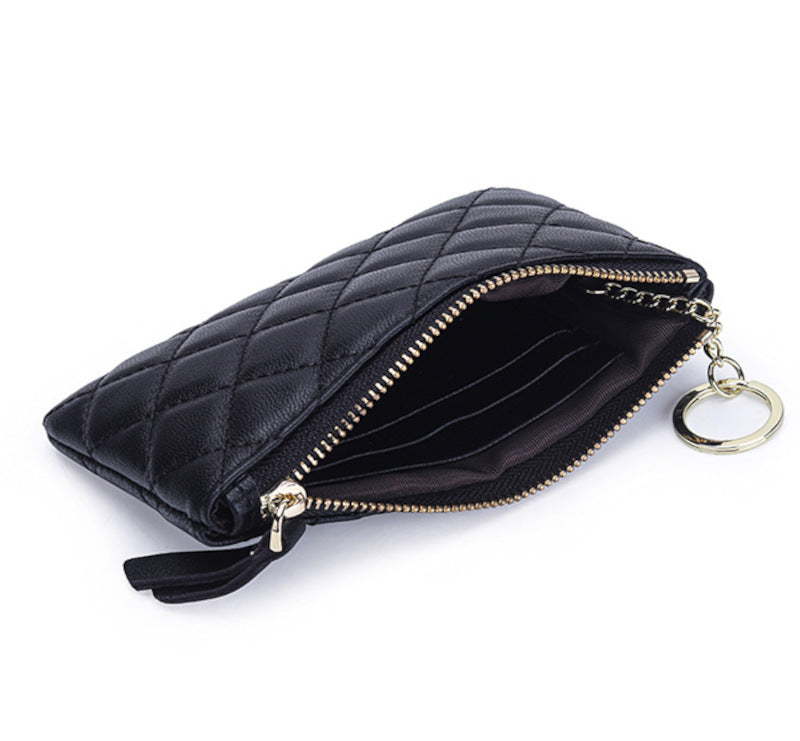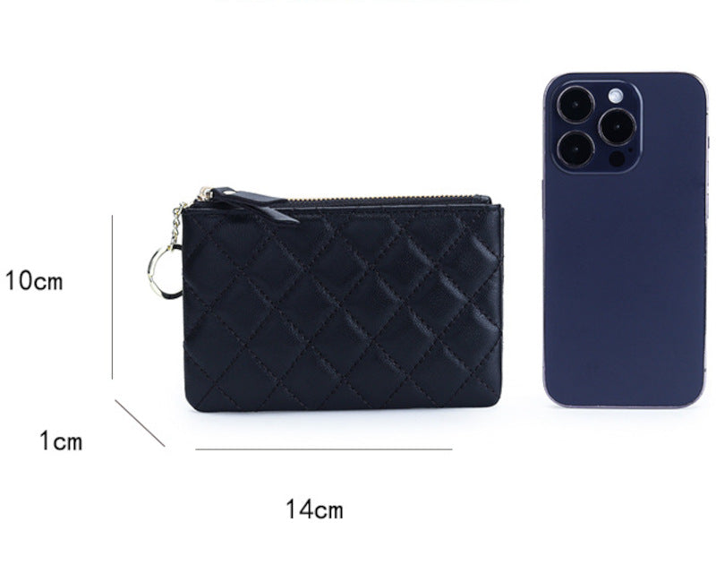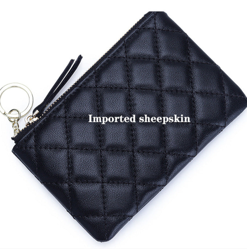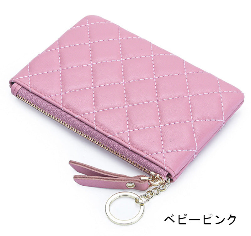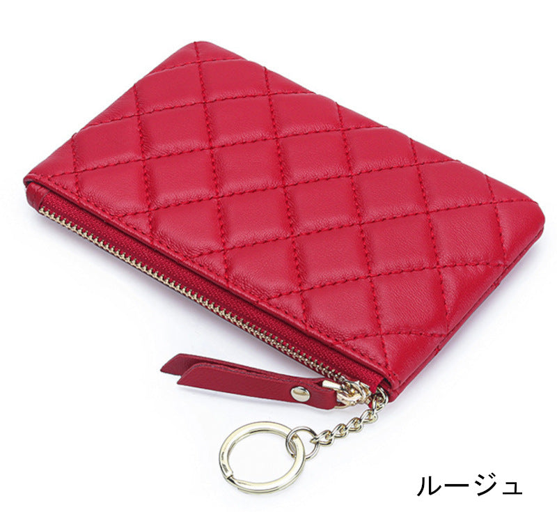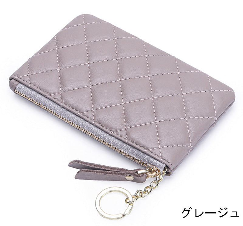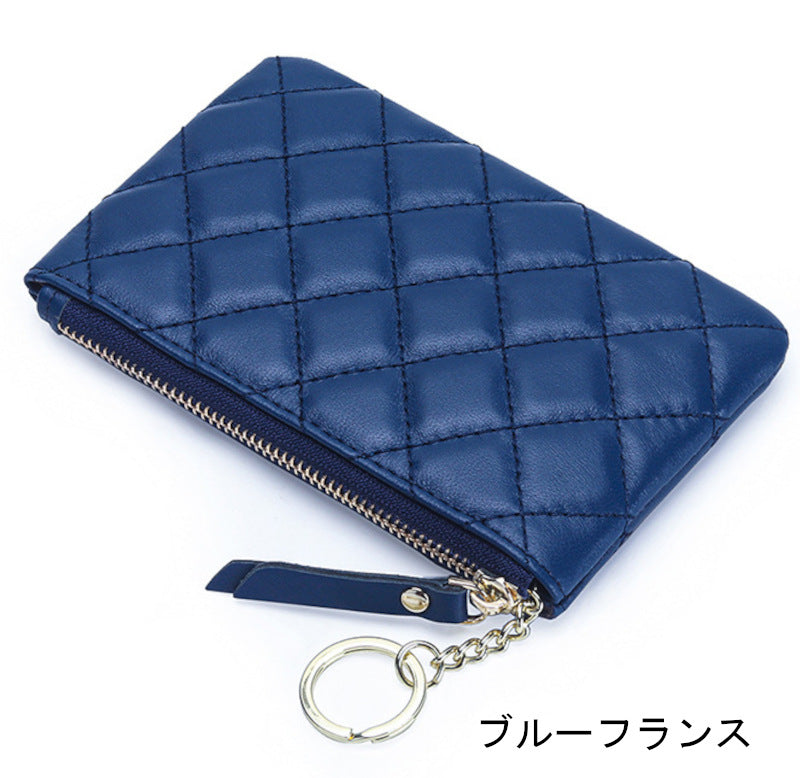 羊革財布 ラムスキン財布 マトラッセ財布 キーチェーン付 本革小銭入れ 黒 赤 ピンク グレー ネイビー