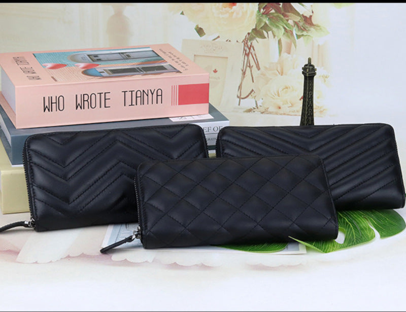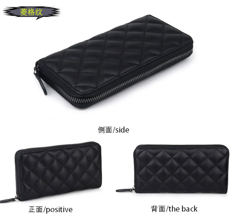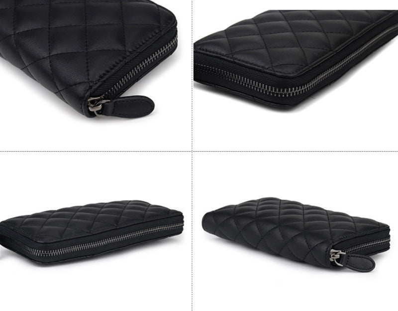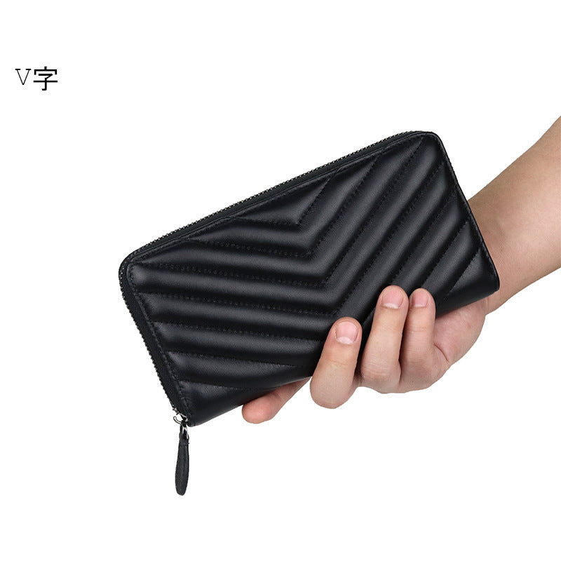 羊革財布 ラムスキン財布 マトラッセ財布 本革ラウンドファスナー長財布 黒 ブラック