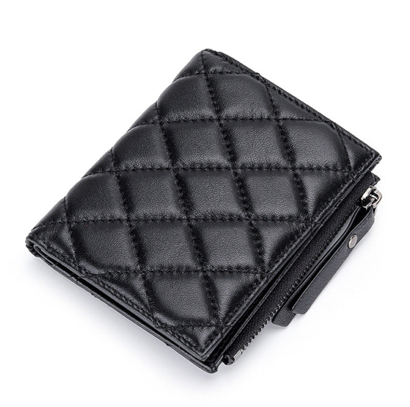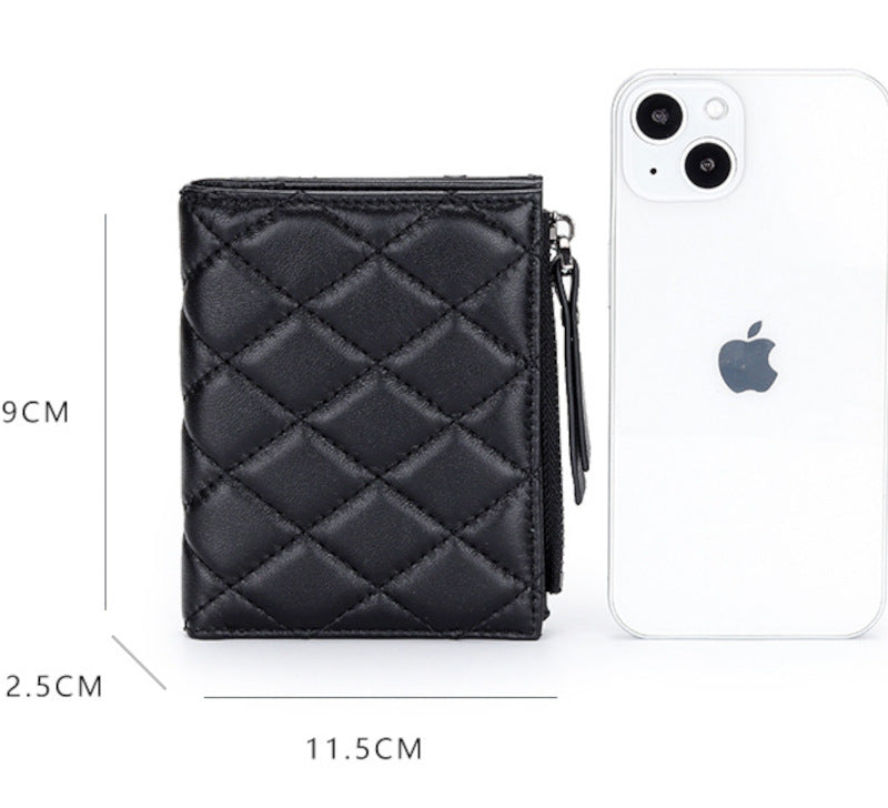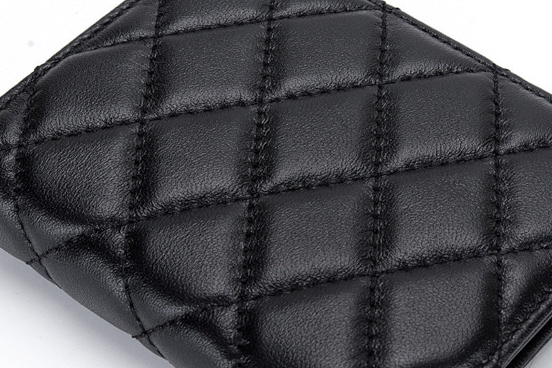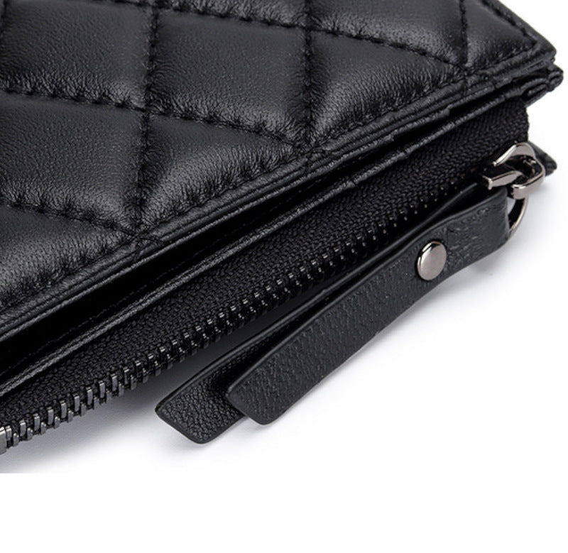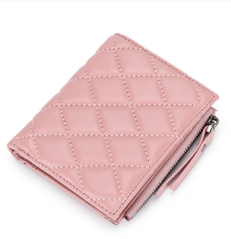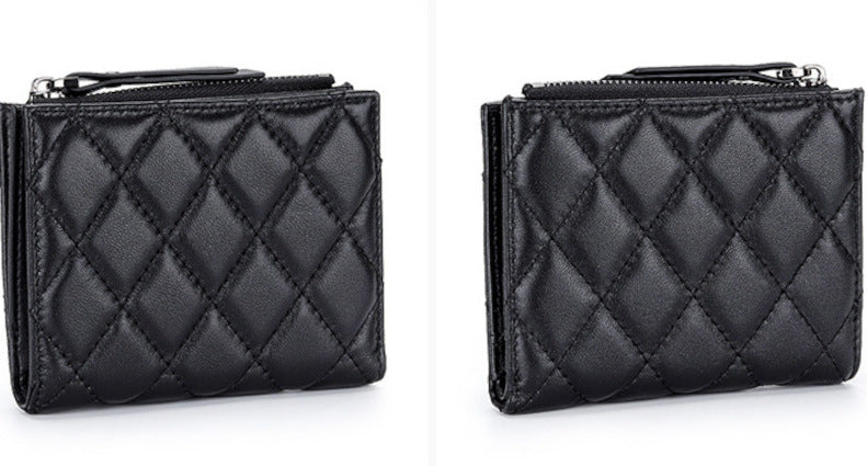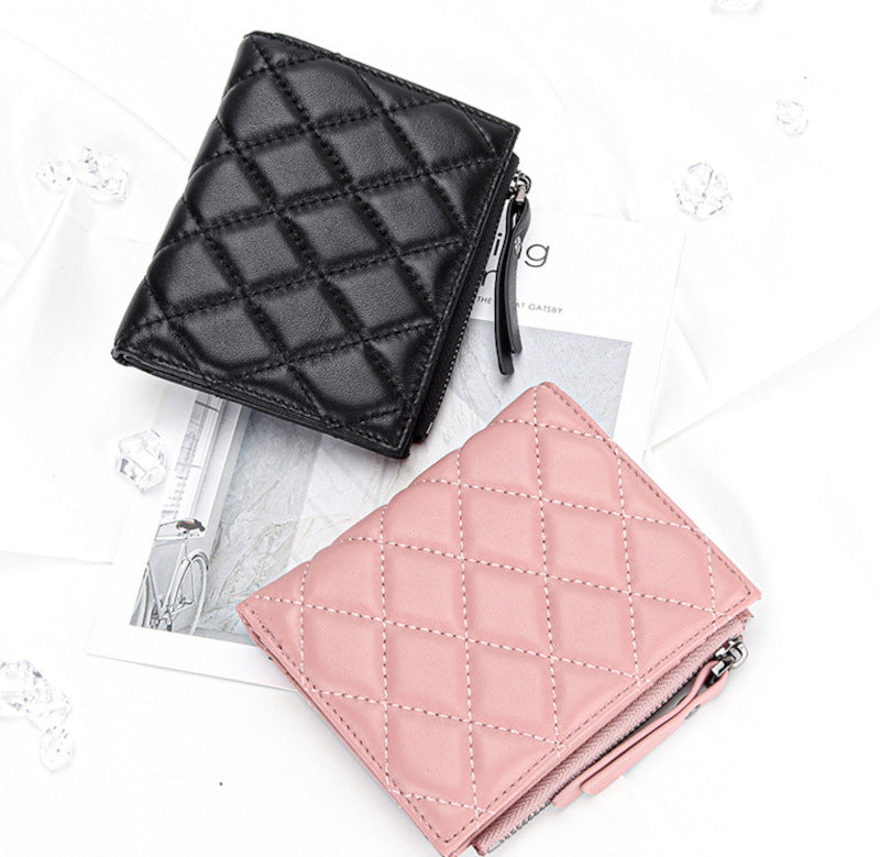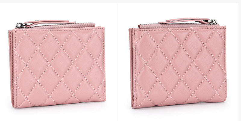 羊革財布 ラムスキン財布 マトラッセ財布 本革二つ折り財布 ファスナー付 黒 ピンク レディース