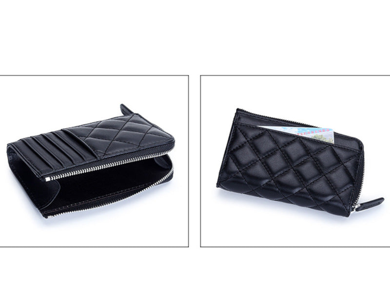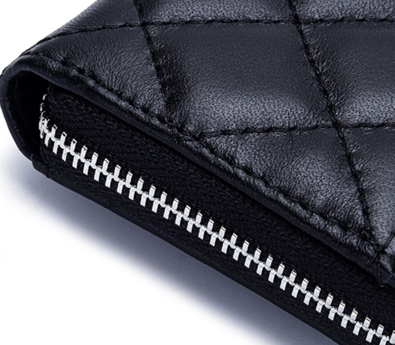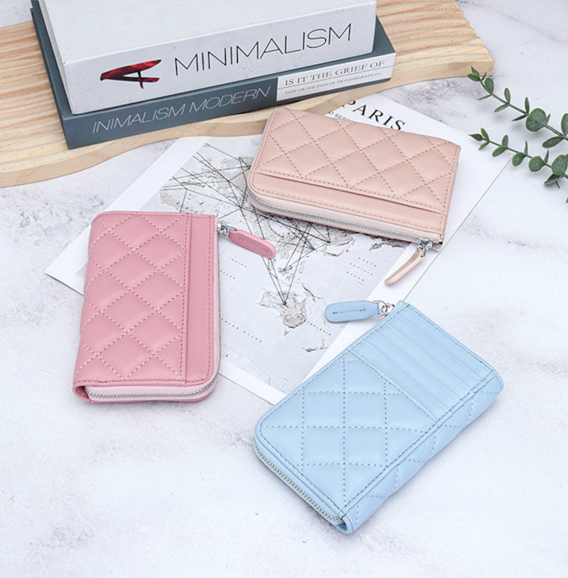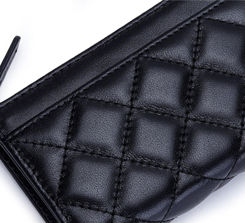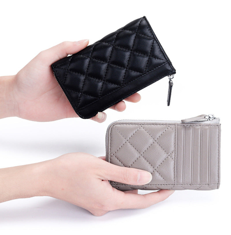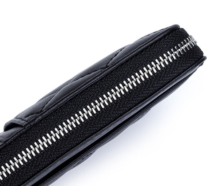 羊革財布 ラムスキン財布 マトラッセ財布 本革二つ折り財布 ラウンドファスナー 黒 ピンク ベージュ ネイビー