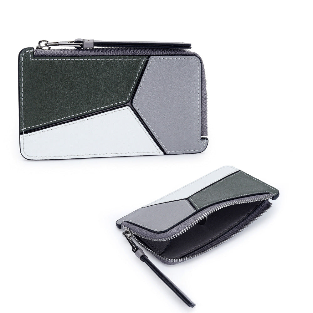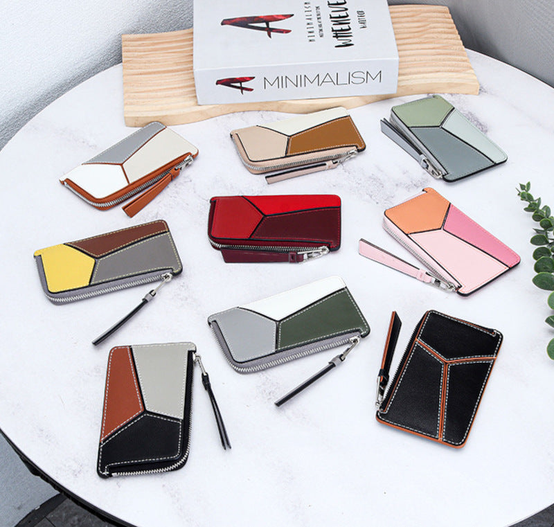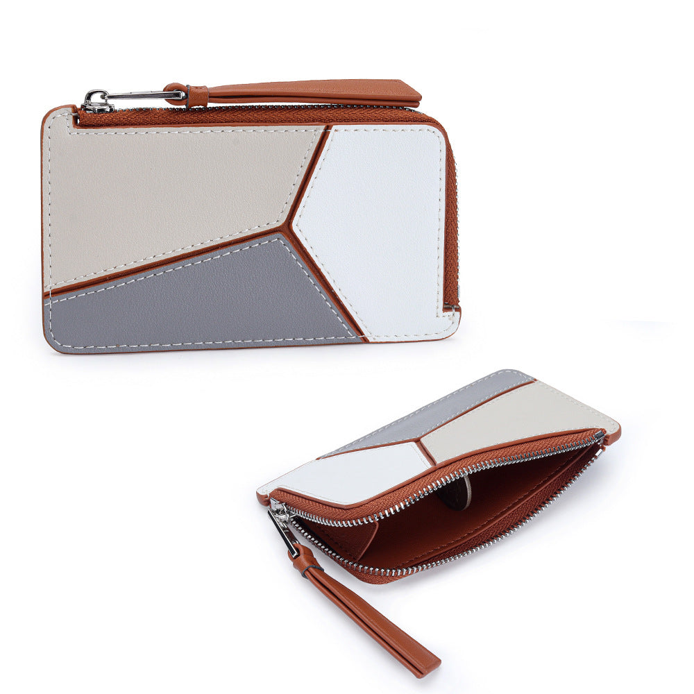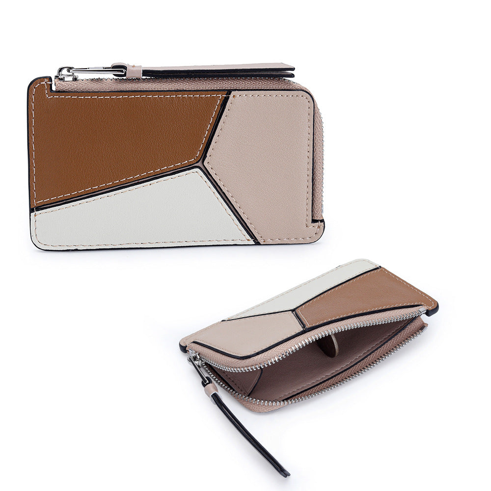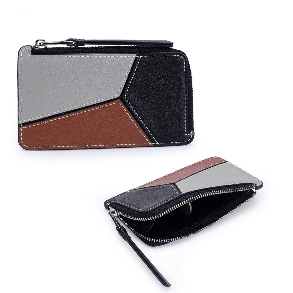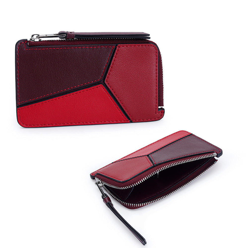 薄型財布 ラウンドファスナー レディース 本革二つ折り財布 本革コインケース パズル風 黒 ピンク