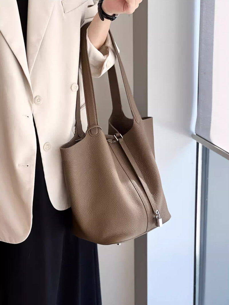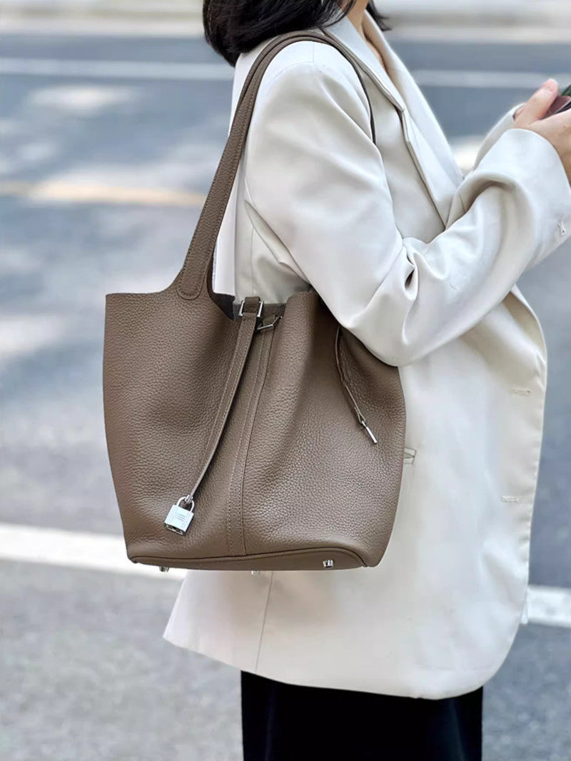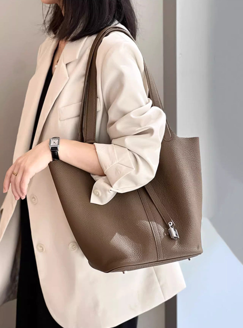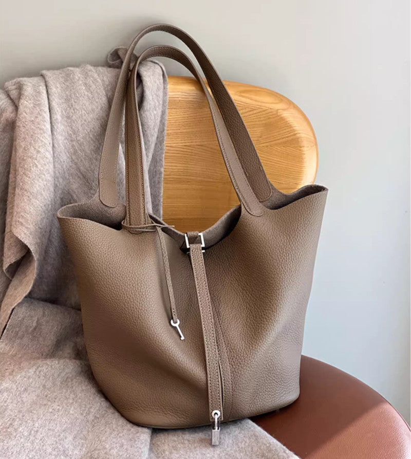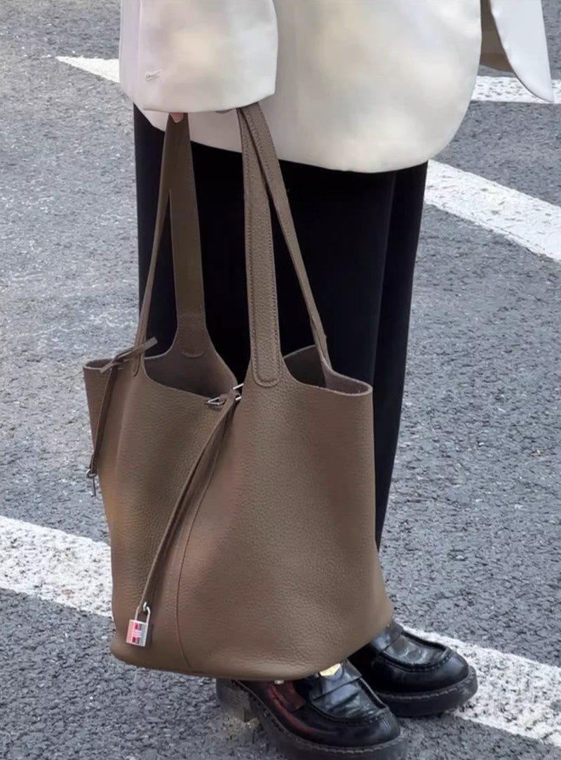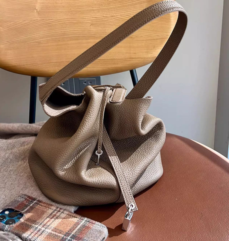 キューブバッグ 本革 ショルダーバッグ レディース エトゥープ バイカラー